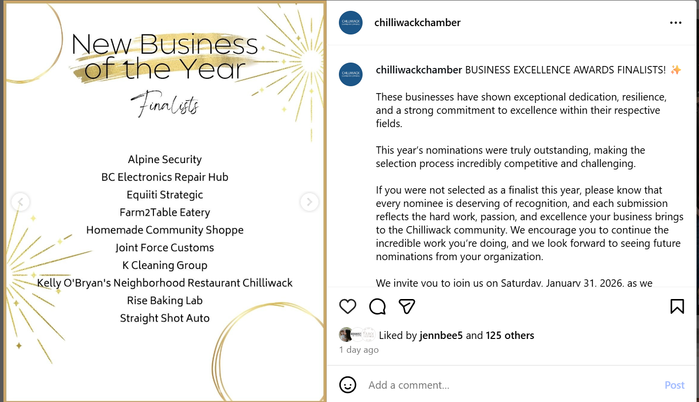 Winner of Business Excellence Award of the Year – Recognized by the Chilliwack Chamber of Commerce for excellence and community impact.
